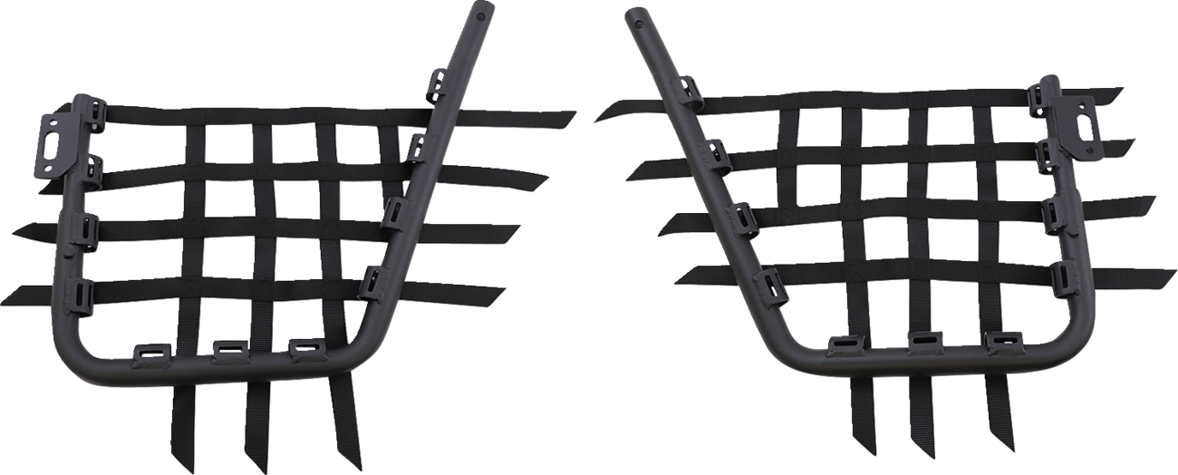 The latest in nerf bar technology combines lightweight aluminum tubing with high-strength steel brackets for the ultimate nerf bar1-1/4" alloy tubes are heli-arc welded at the joints4-gauge steel mounting bracketsThe highest tensile-strength webbing is used for maximum safetySpecs