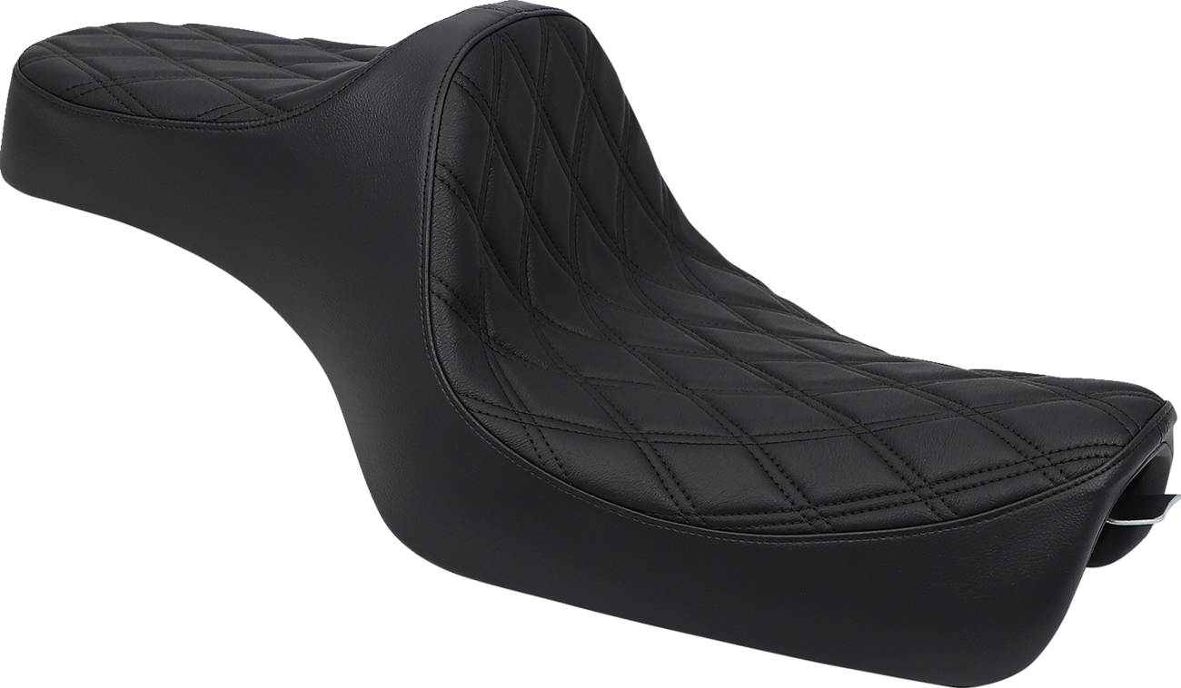 3/16" ABS thermoformed seat base for a perfect fit, with a carpeted bottom and rubber bumpers to protect paintFits with all Drag and most Harley-Davidson sissy barsSeat is made narrow up front for better leg clearanceIncludes all mounting hardwareMolded polyurethane foamAutomotive-grade vinylMade in the U.S.A.Specs