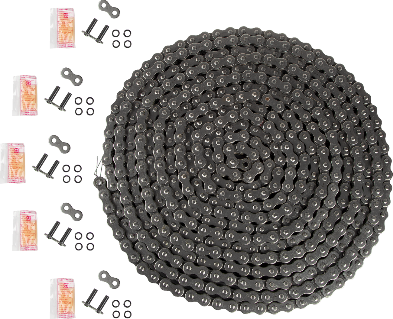 Features quad pin riveting, solid bushings and rollers, and tough O-ring sealsShot-peened and pre-stretchedRecommended for motorcycles originally equipped with O-ring chainsProvides 1-1/2 times longer wear life than an O-ring chain and 12 times longer wear life than a standard chain520 chain includes clip connecting link525/530 chain includes rivet connecting linkMade in Japan