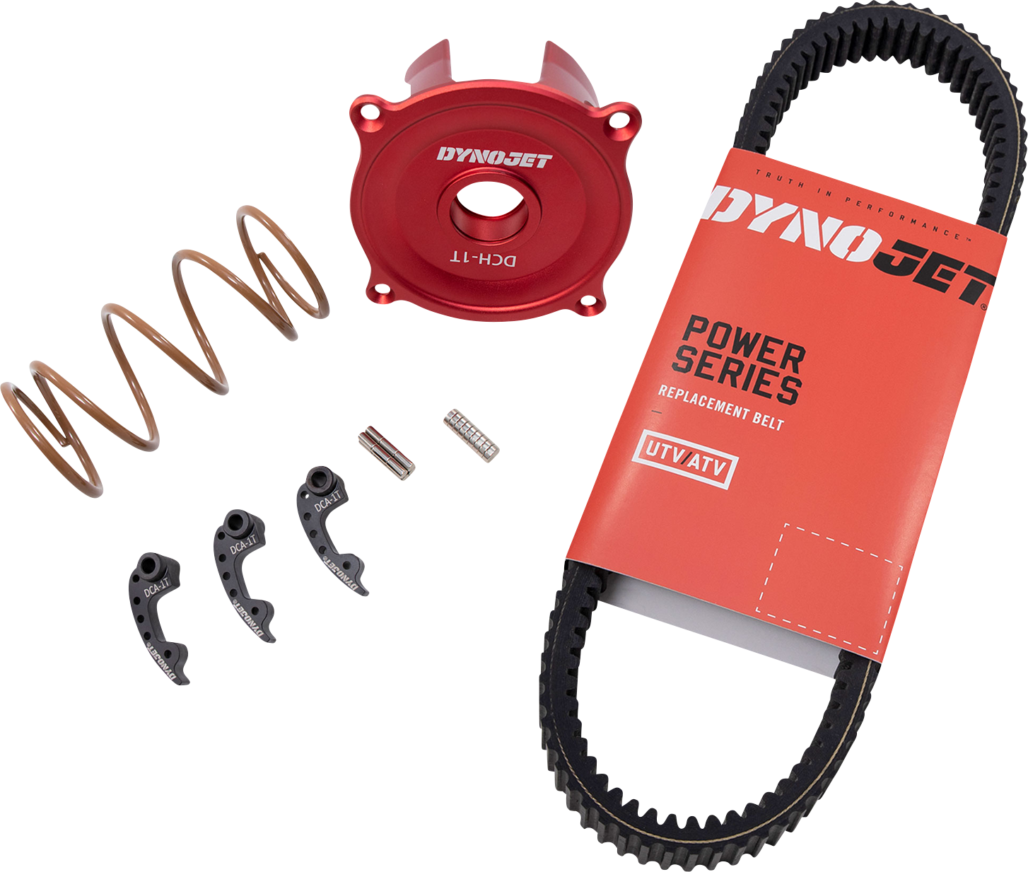 Heavy-duty belt engineered for high powered UTV/ATV applicationRigorously texted to withstand harsh environmentsTop quality belt backed by an industry exclusive LIFETIME WARRANTYAdvanced Polymer construction that resists shock loadsStructurally optimized for maximum clutch sheeve gripEngineered to deliver maximum output from Dynojet Power Vision 3 performance tunesClutch kit is easily adjusted for Sand, Mud, Rock, and Trail applicationsIncreased top speed over stockMore efficient power transmission to the wheelsCooler clutch temps yields increased belt lifeMade in the U.S.A.Specs