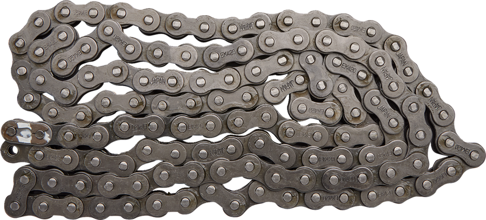 Super economical roller chainStandard chains have two-point pin rivetingSpecial steel alloy, solid roller and pre-stretched, shot-peened partsComes with clip-type master link