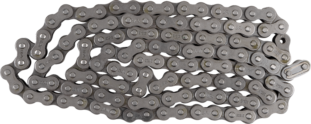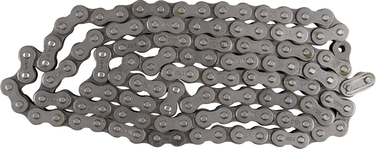 Super economical roller chainStandard chains have two-point pin rivetingSpecial steel alloy, solid roller and pre-stretched, shot-peened partsComes with clip-type master link