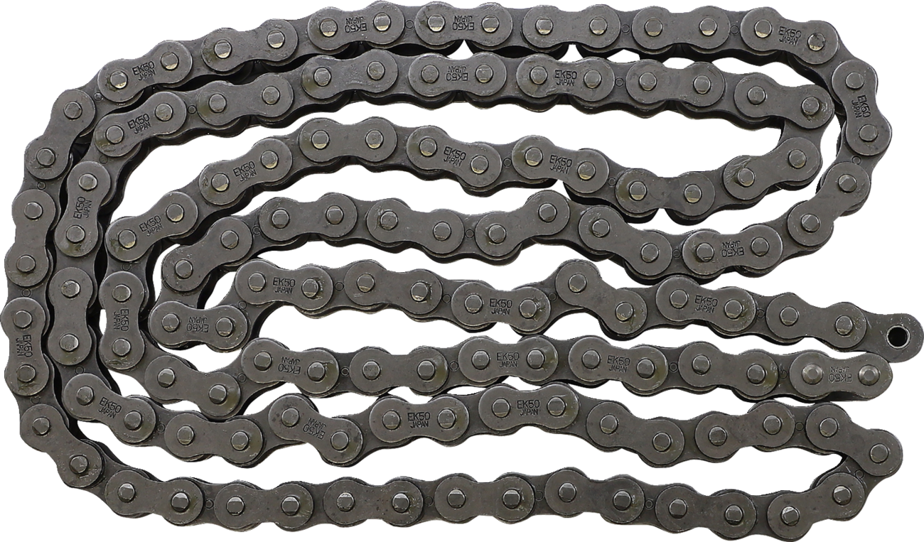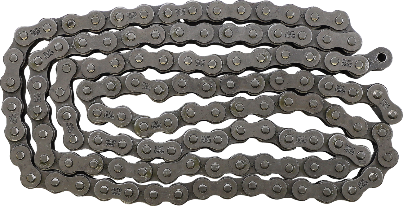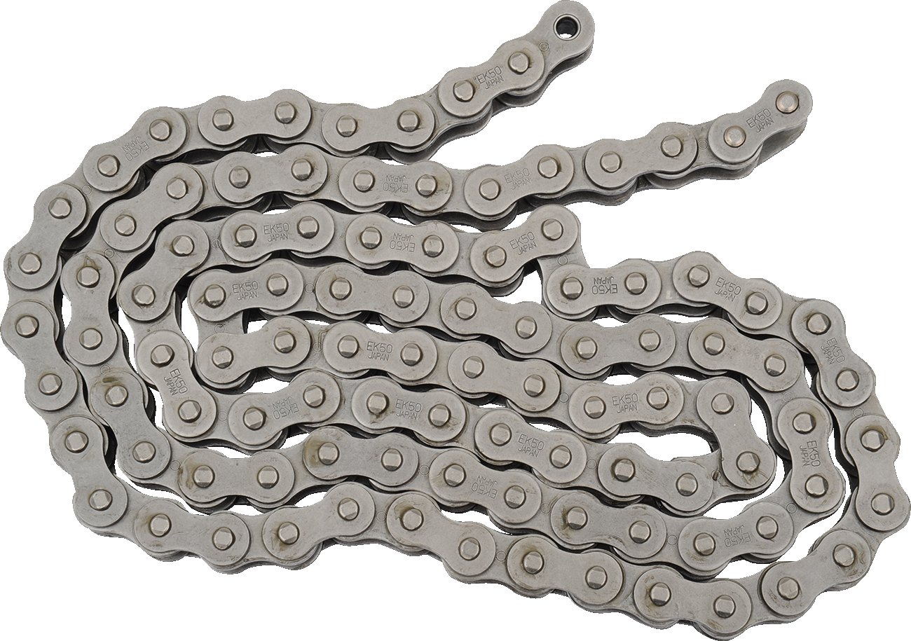 Super economical roller chainStandard chains have two-point pin rivetingSpecial steel alloy, solid roller and pre-stretched, shot-peened partsComes with clip-type master link