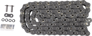 Value O-ring chain that doesn't compromise quality or durabilityHigh-tech heat-treated steel alloy constructionO-ring seals lock in lube, lock out gritFeatures lightening holes