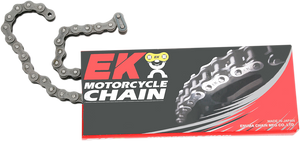 Super economical roller chainStandard chains have two-point pin rivetingSpecial steel alloy, solid roller and pre-stretched, shot-peened partsComes with clip-type master link