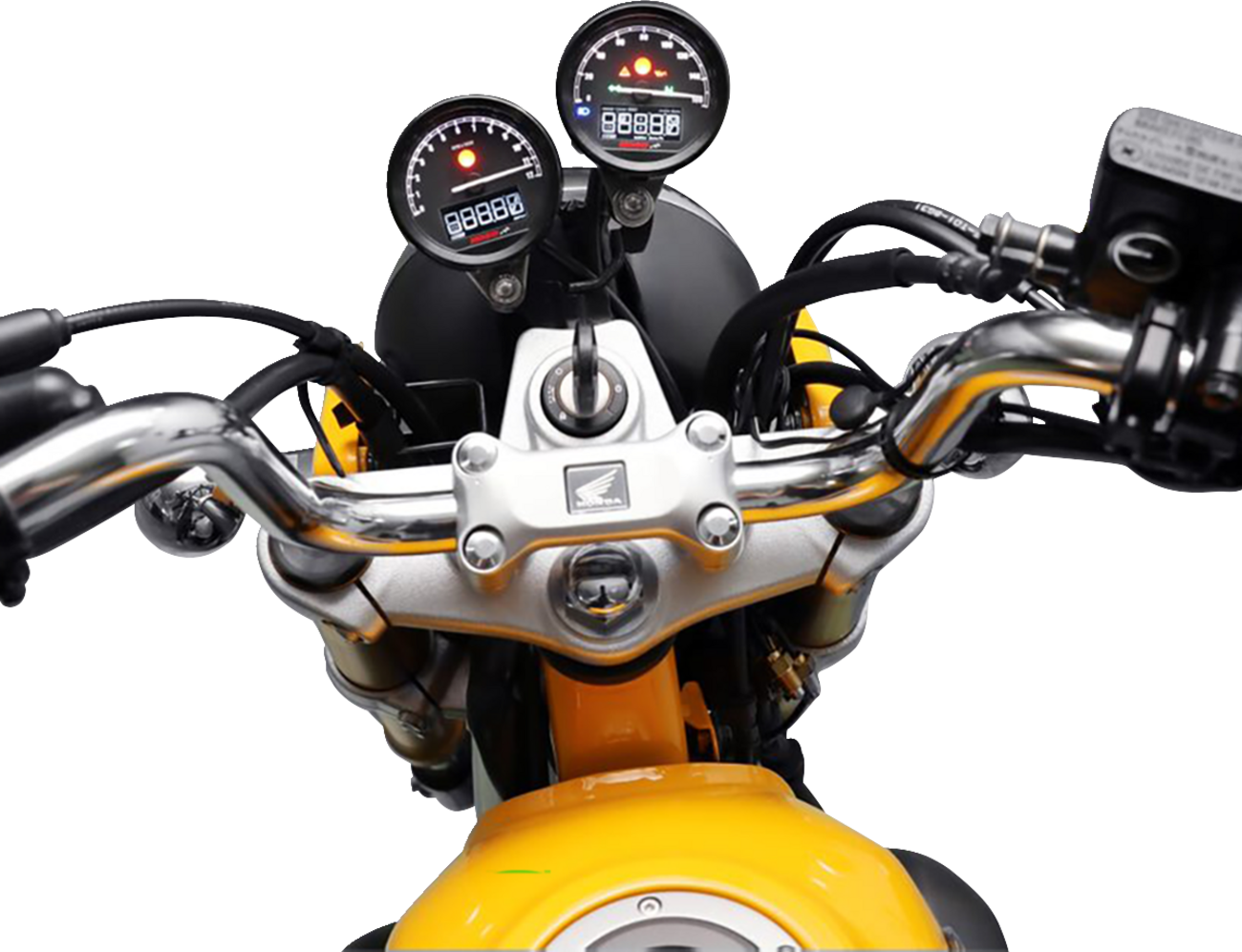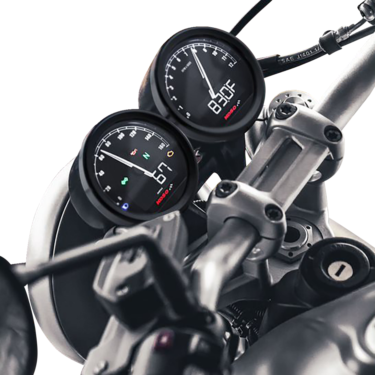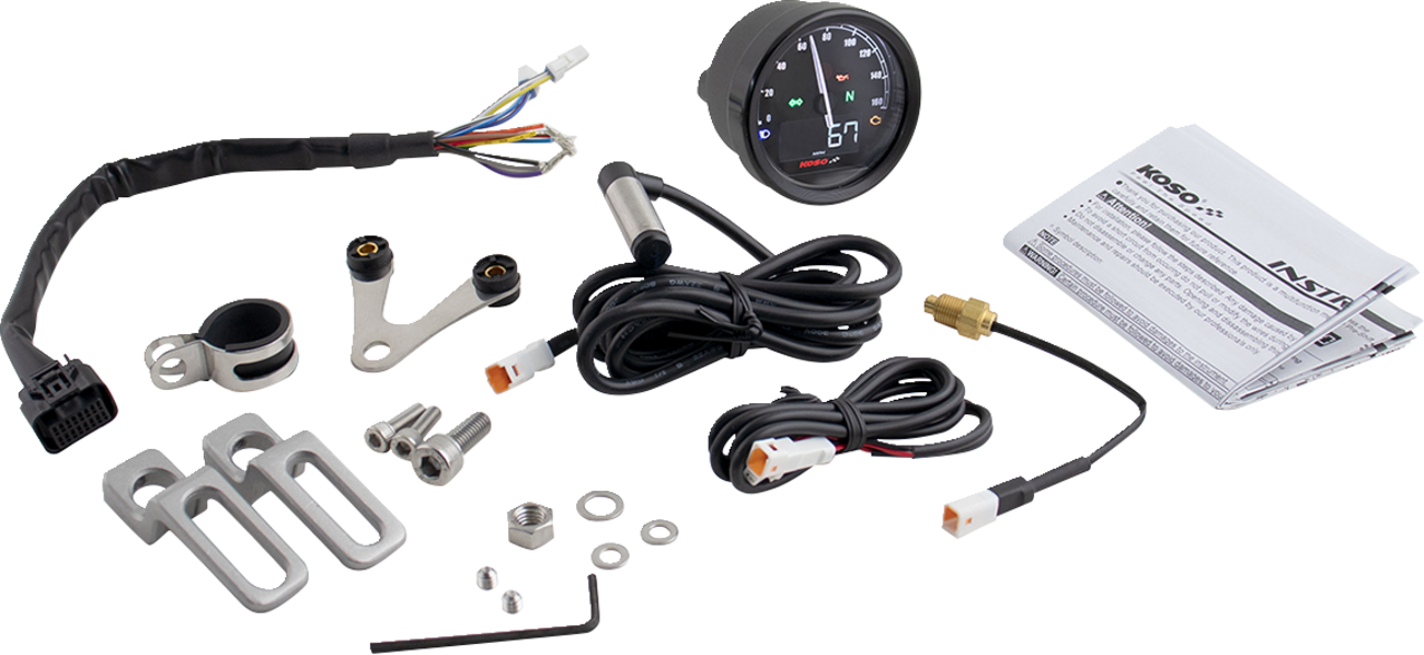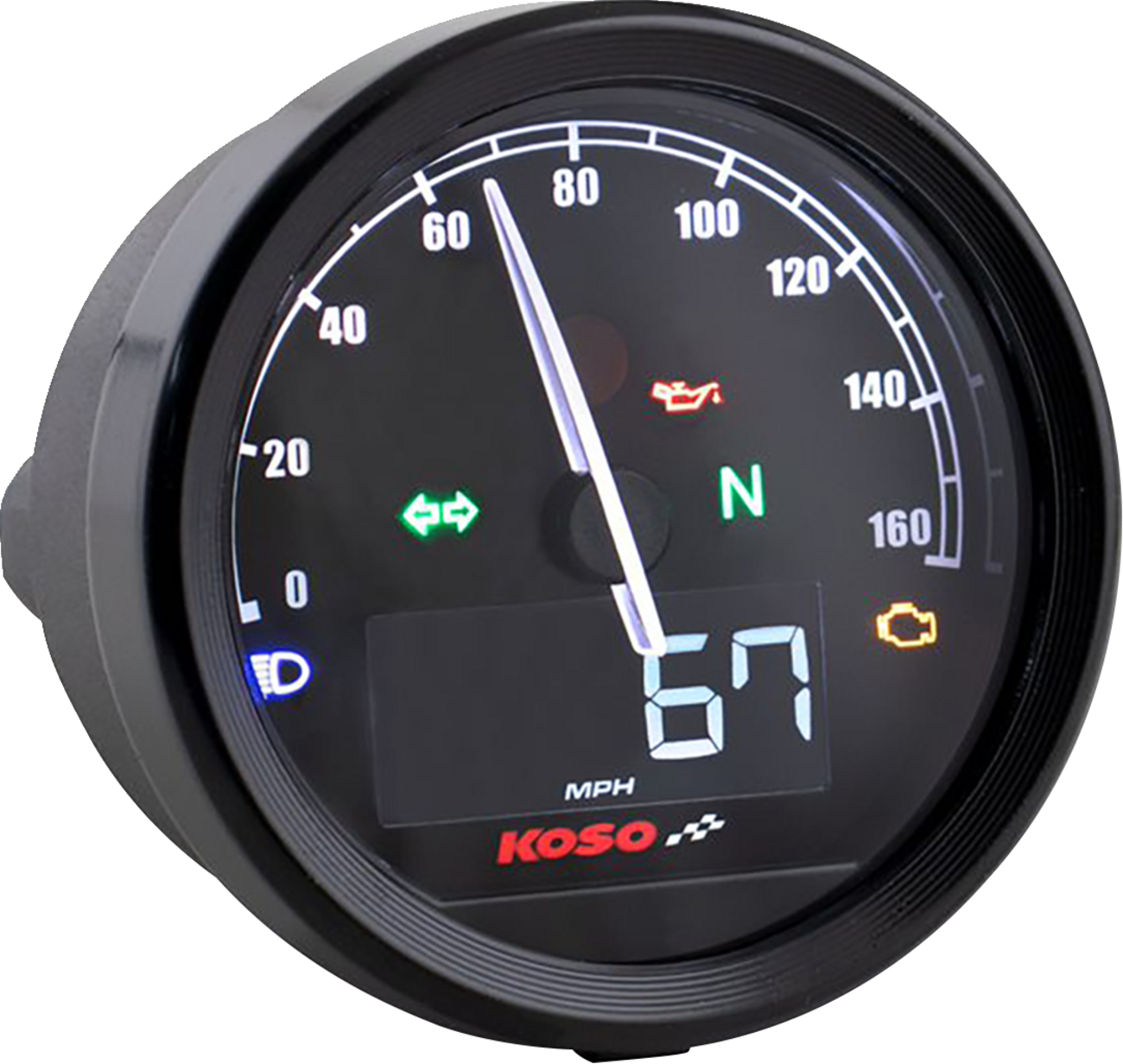 Eight-color changeable LCD displayEasy to read in all light conditions with backlit designSpeedometer measures speed from 0-100 mph (0-160 km/h) with optional programmable over-speed warning light Speedometer features all necessary information: odometer, trip meter, thermometer, high temperature warning, fuel meter, low fuel warning, clock, volt meter, and moreIt's compact LCD display is very easy to read even in the darkest conditionsD80 multi-meter features digital speedometer (up to 225 mph) and analog tachometer that measures RPM up to 8000