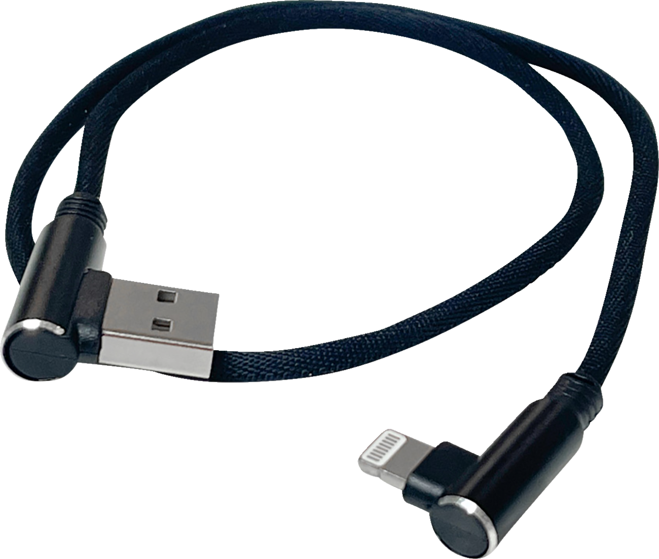 This 90 male USB to 90 male lightning phone charging cable is designed to provide power and charging capability in even the tightest of spacesIt is outdoor rated and built with a durable construction, ensuring reliable performance in any environmentData capable