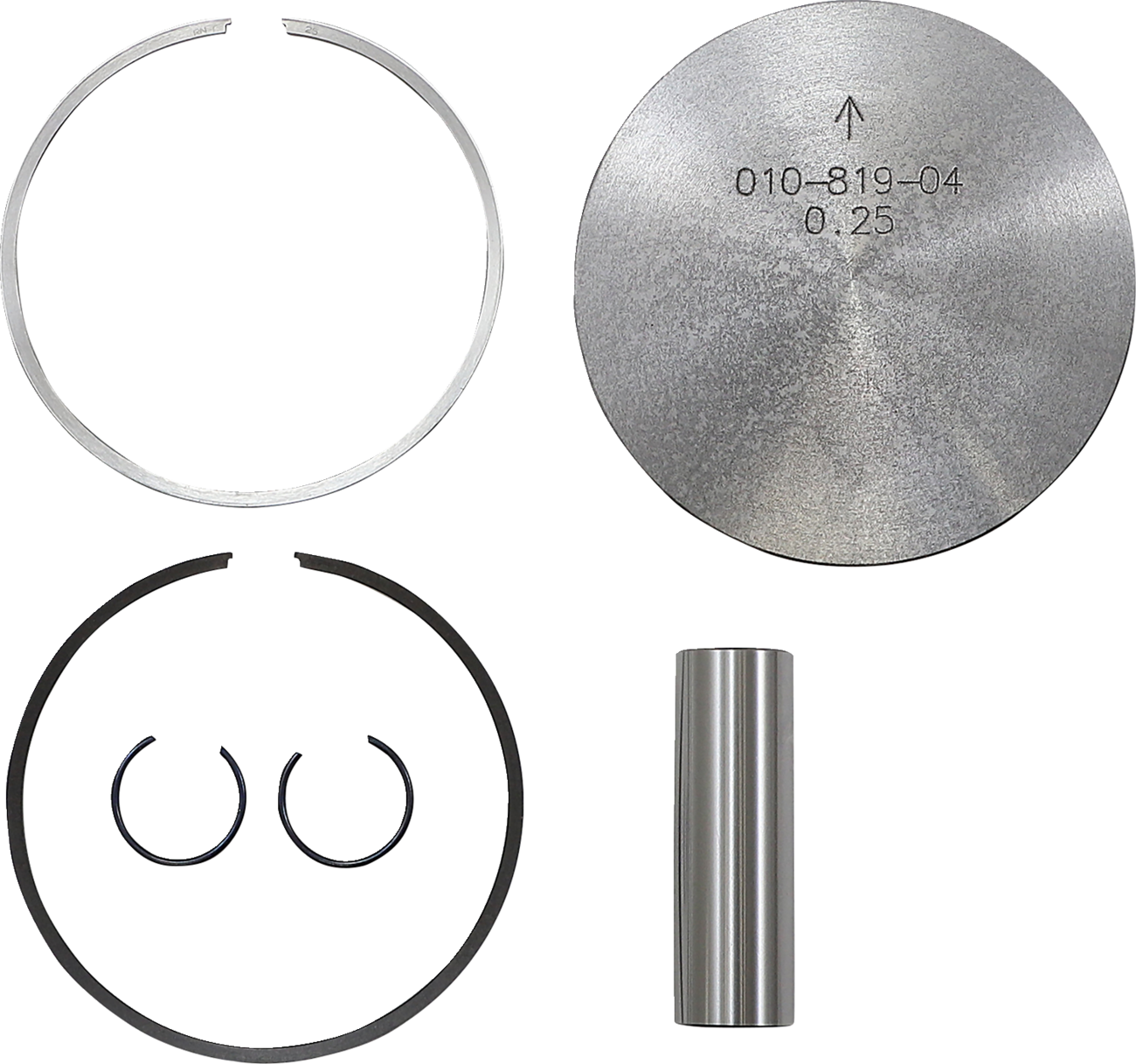 Quality and construction that meets or exceeds OEMFeatures improved E-clip designContains piston, rings, pin and clipsSkirts have a nonabrasive, expansion-retarding MOS2 coating to reduce heat and friction for added power and longevityMOS2 coating actually draws heat through piston walls and out the bottomSpecially hardened tops add strength to ring groovesAdditional rings available separatelySpecs