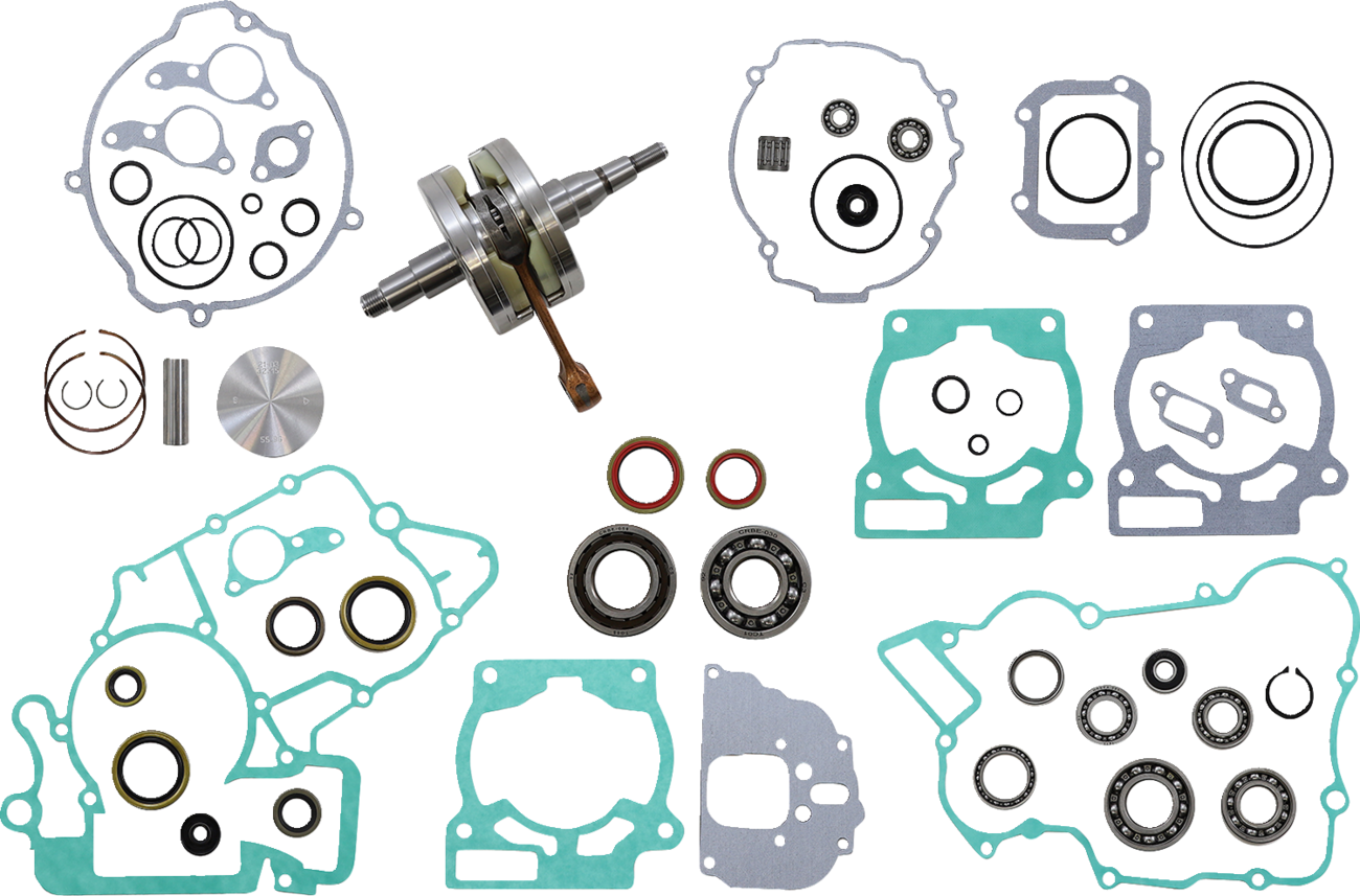 Convenient one-stop shop in a box; nearly all components required for a complete and professional rebuildVertex piston kit (standard compression piston, rings, pin and clips)Hot Rods heavy-duty crank (stock stroke with wrist pin bearing)Hot Rods main bearing/seal kitHot Rods transmission bearing kit (includes transmission bearings, output shaft collar and sprocket lock washer)Hot Rods counter balancer bearing kitHot Rods water pump bearing and seal kitVertex complete gaskets kit, including seals and O-ring kit (covers top and bottom)Specs