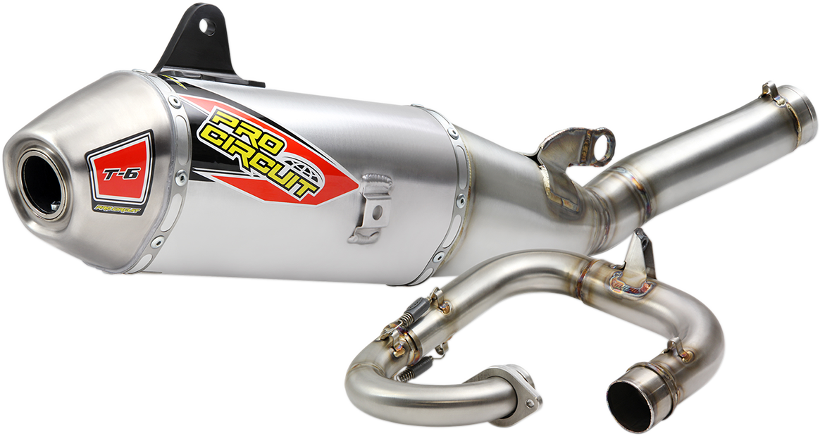 • The T-6 Stainless Steel Exhaust System offers the same benefits as Ti-6 Titanium Exhaust System, but the T-6 is constructed of stainless steel and aluminum for increased strength and durability while giving riders a more affordable alternative to titanium
