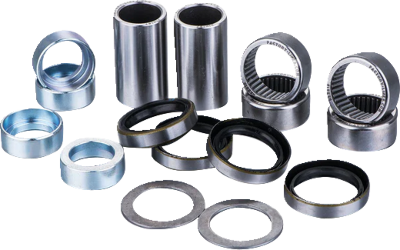 Features Each Factory-Links premium kit contains all elements required for a full OEM-quality service of your swingarm Our dedicated off-road design of needle bearings, collars, pins and dust seals is specifically manufactured in order to reach the stringent OEM quality requirements, in terms of materials, dimension tolerances, hardness and surface roughness Specs