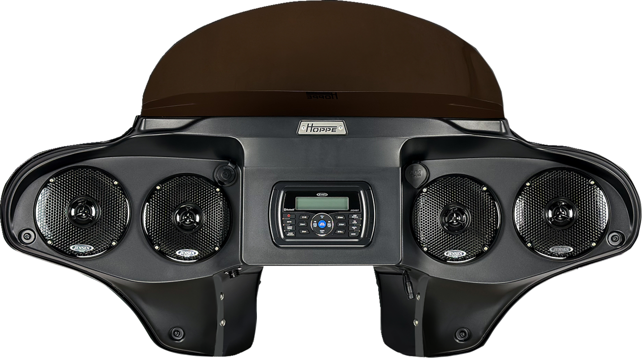 OEM quality injection molded plastic inner and outer fairingUV stable,won’t become brittle or fade in the sun like ABS plasticPolished outer fairing for easy paint applicationLightly textured inner fairing for OEM look / feel. Can be painted for custom applicationsFully assembledBrackets included. Just mount to forks at stock windshield docking pointsJust add power, ignition, and ground. Quick disconnect plug is includedConcealed internal antenna for a clean lookIncludes 12" clear windshieldWill accept any '14 up HD batwing OEM or aftermarket windshield, windshield trim, vent trim, or wind deflectorsMade in U.S.A.Pre-amp output for easy upgrading later.WaterproofAM/FM radioBluetooth wireless audio / handsfree phoneUSB / Aux inputSpecs