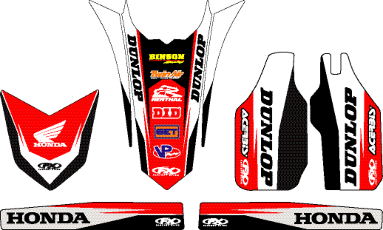 Everything you need to give your ride a fresh new lookThe best part is it's an all-in-one kit that is economical, and it all matchesExcellent complement to full-shroud graphic kitsBack-printed on scratch-resistant 16-mil vinylInclude universal fender and body piecesSpecs