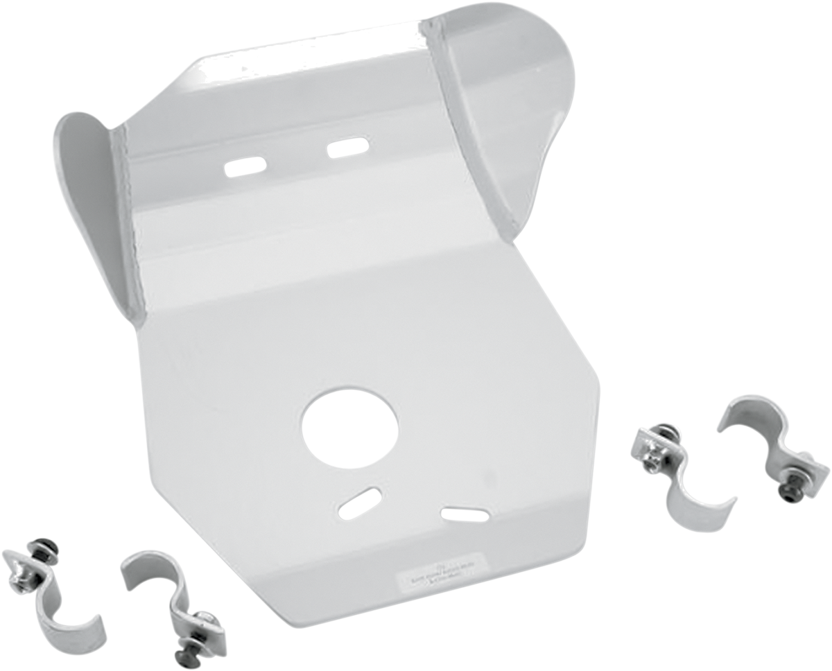 Protect vital engine parts and cases from rocks and debrisClear anodized for corrosion protection and good looksSkid plates made from 3/16" 5052 H-32 aluminumSmooth underside won't snag when crossing logsOil drain hole on all required modelsHeat-treated chromoly steel clamps keep plates mounted securelyAll mounting hardware includedMade in the U.S.A.Specs