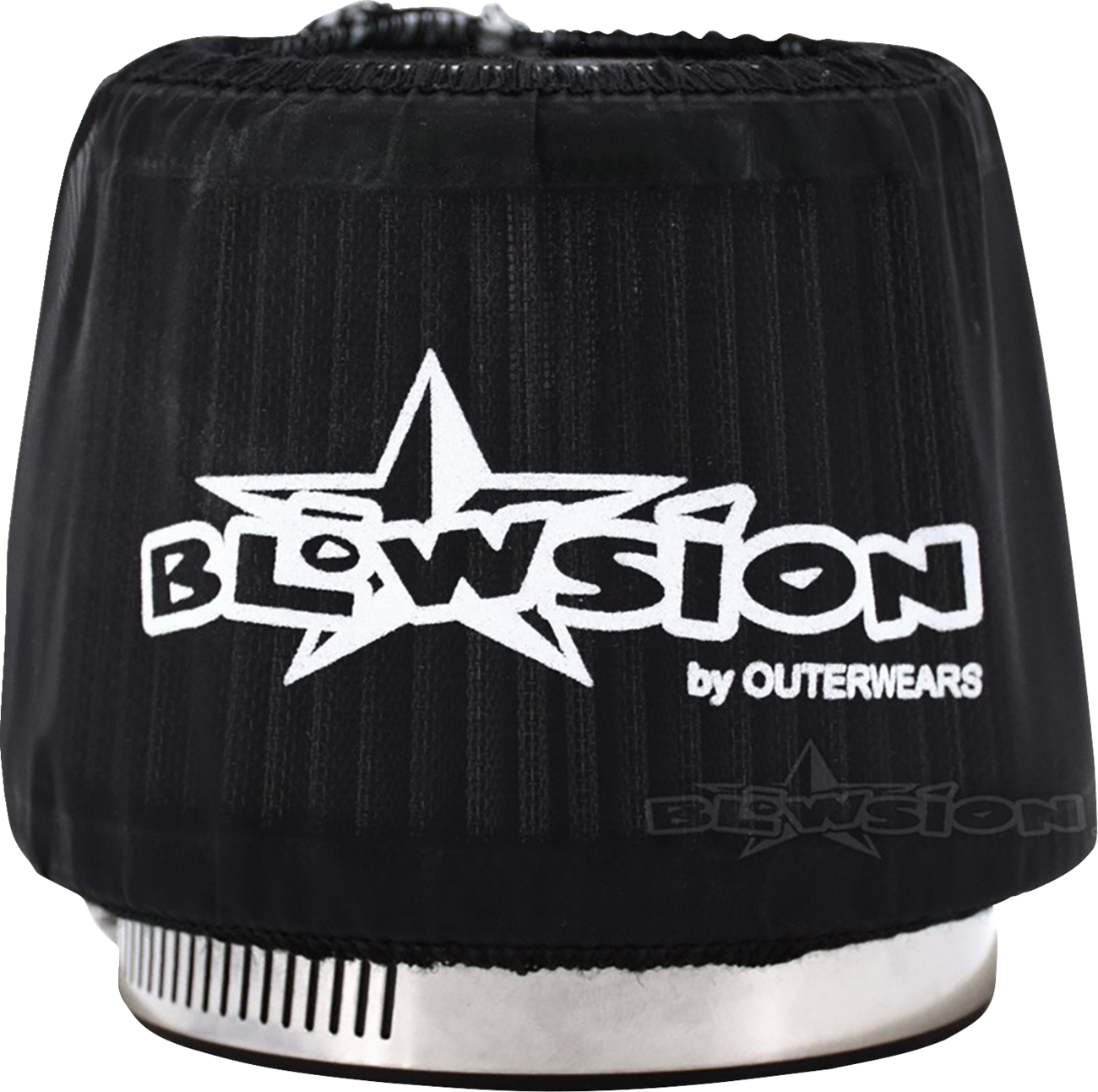 Outerwears flame arrestor water-resistant pre-filter screen has a 4" diameter taper fit, 2.5" tall