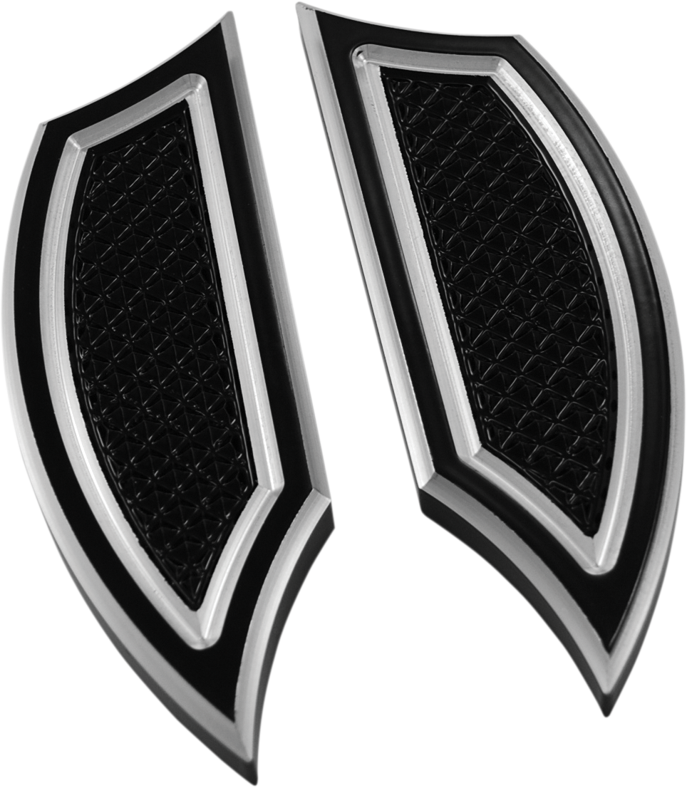 CNC-machined from 6061 billet aluminumFit most forward controls and universal mountingRigid mounting with 3/8"-16 mounting boltAllow more foot movement compared to conventional footpegsReverse-cut design with diamond-cut raised center for increased tractionMay be used as passenger foot boards if custom mountedMade in the U.S.A.