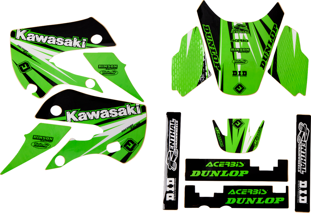 • Graphic Kit includes shroud decals and trim kit, front and rear fender decals, lower fork guards and swingarm decals (airbox decals included with some kits)