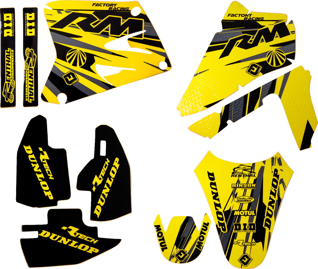 • Graphic Kit includes shroud decals and trim kit, front and rear fender decals, lower fork guards and swingarm decals (airbox decals included with some kits)