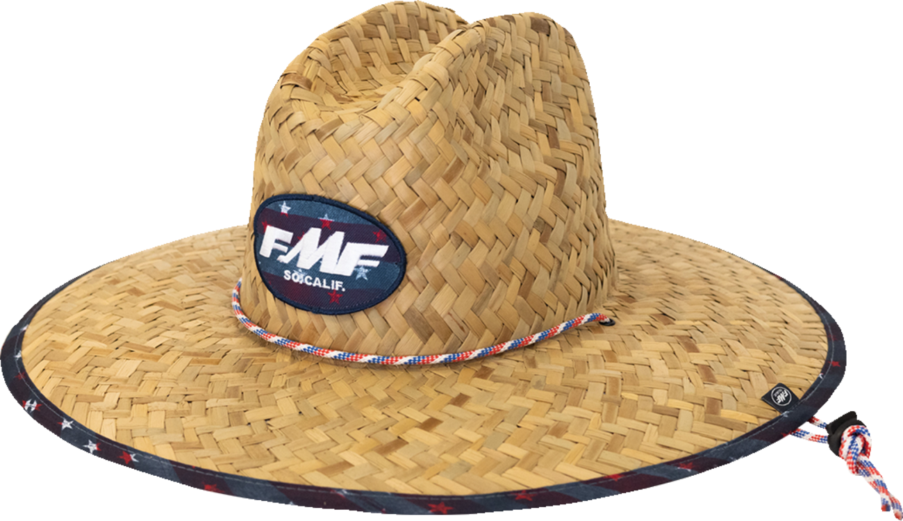 Straw hat with classic weave and adjustable drawcordWoven patch on front of hat Custom print underneath brimContent: 100% Straw/100% Polyester