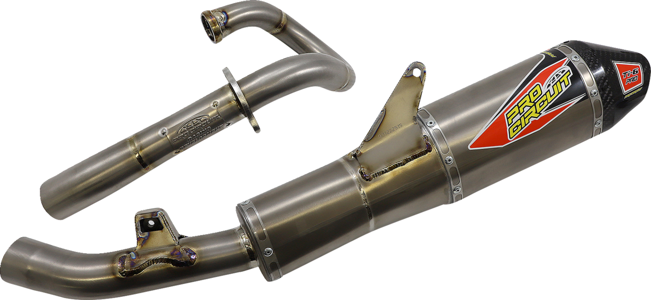 Ti-6 Pro titanium exhaust system is created as a full race systemDesigned to increase performance and help professional racers pass AMA/FIM sound regulationsMachined aluminum muffler brackets for increased strength and durabilityAsymmetrical muffler configuration for increased packing volumeMost systems equipped with a RC-4 Response Chamber for reduced sound output machined mid pipe to headpipe joint for a better, leak-free fitTIG precision weldingMade in the U.S.A.Specs