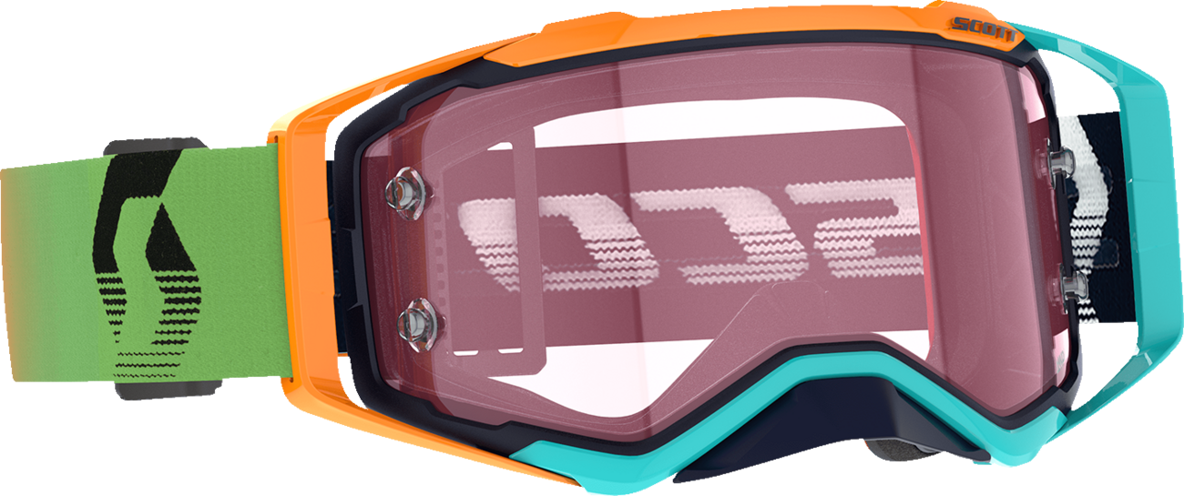 SCOTT Amplifier Technology to optimize contrast and clarityLarge field of visionLens Lock System designed to guarantee safe lens retentionArticulated outriggers that adapt to any helmet shape and sizeNoSweat 3-layer molded face foam consists of a water absorbent, microfiber layer to soak up moisture fast and avoid sweat getting into your eyes or inside the goggleInjection molded lenses to provide improved definition and optical clarity, allowing you to see contours and transitions in the dirtExtra wide, 50 mm no-slip silicone strap provides stability and comfort under any conditions100% UV Protection - Optically engineered to screen out 100% of harmful UVA/UVB raysImpact protectionNoFog anti-fog lens treatment to prevent condensation and foggingSingle Lens WorksIncludes microfiber goggle bag and nose guard