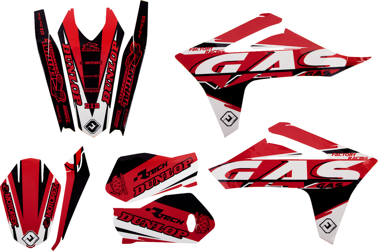 Features Sub-surface printed on durable, high gloss quality 15-mil vinyl Die-cut to shape for easy installation Graphic Kit includes shroud decals and trim kit, front and rear fender decals, lower fork guards and swingarm decals (airbox decals included with some kits) Specs