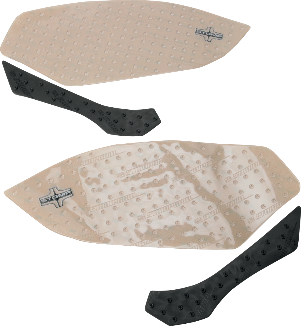 Make gripping your ride incredibly easy for increased bike control with more contact between bike and riderProvides more lower body grip and less upper body stressUltra-clear proprietary elastomer material means paint and graphic remain visible through traction padsNon-abrasive material; designed to wear down and be replaced like a tireWill not wear down leathers as compared to grip tapePre-molded with rounded edges that resist peelingSuper-strong 3M peel-and-stick adhesiveMade in the U.S.A.Specs