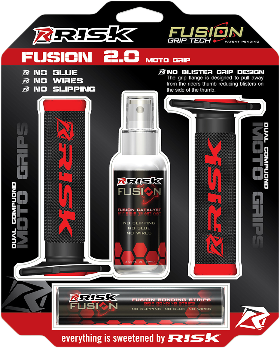Dual compound Motocross Grips with Fusion Bonding System which eliminates the need for grip glue and grip wire
