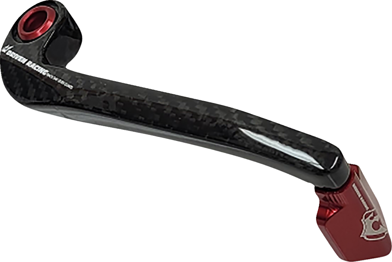 Carbon fiber body with an aluminum tipCurved body for safe dismounting from your motorbikeComes with two adapters to fit hollow barsKits are available with colored tipsKit designed to properly fit most hollow bars; bike specific adapters available separatelyMax reach of 135 mm or 5.31"This lever guard will not fit BMW S 1000 RR clutch side with stock levers