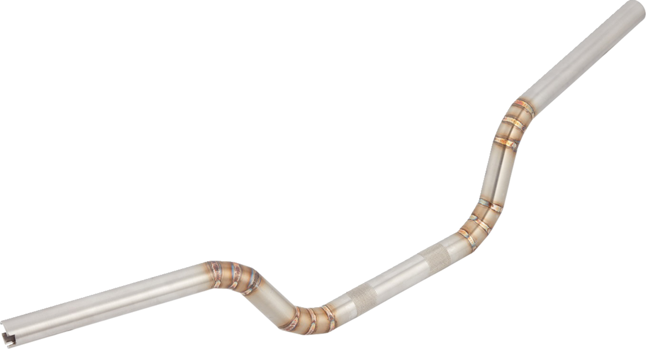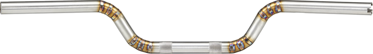 Handcrafted moto handlebars made from stainless steel tubing that is bent, cut and welded into an aggressive styled bar with a comfortable riding positionHand finished for a unique look Moto style handlebar provides an aggressive yet comfortable riding position Made from 1" premium stainless steel tubing1" diameter knurled clamping area Will work with both cable and throttle by wire throttle