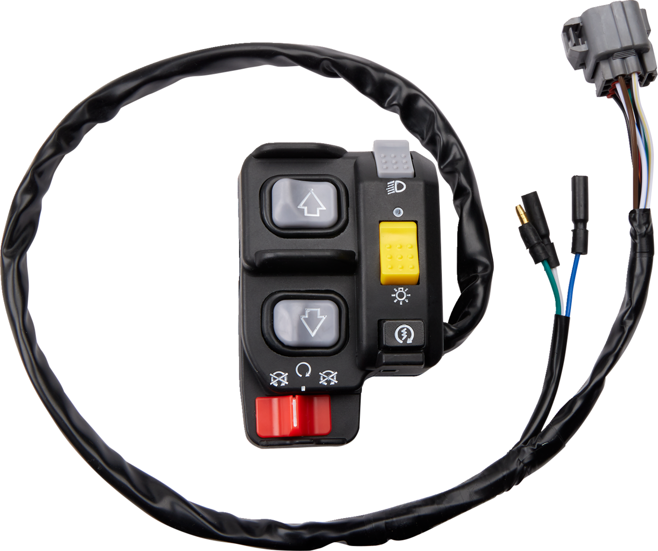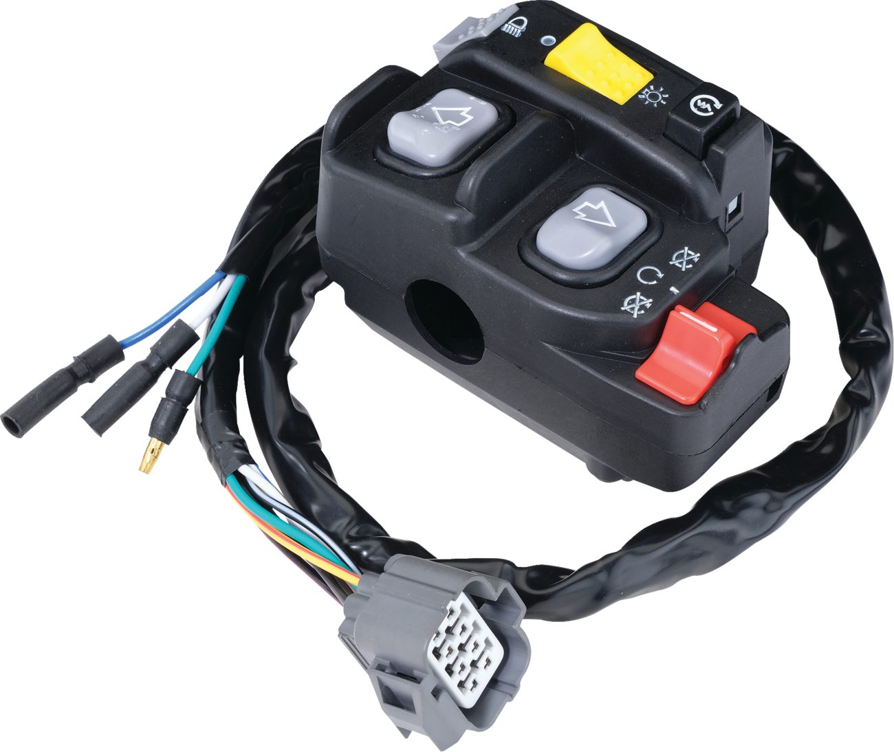 If one of your controls quits working, it is probably the internal switch on the handlebar blockThis complete block has all the same switches including hi/lo/off beam, off/run/off, and reverse overrideFix it with this cost-effective exact replacementSimple installationSpecs