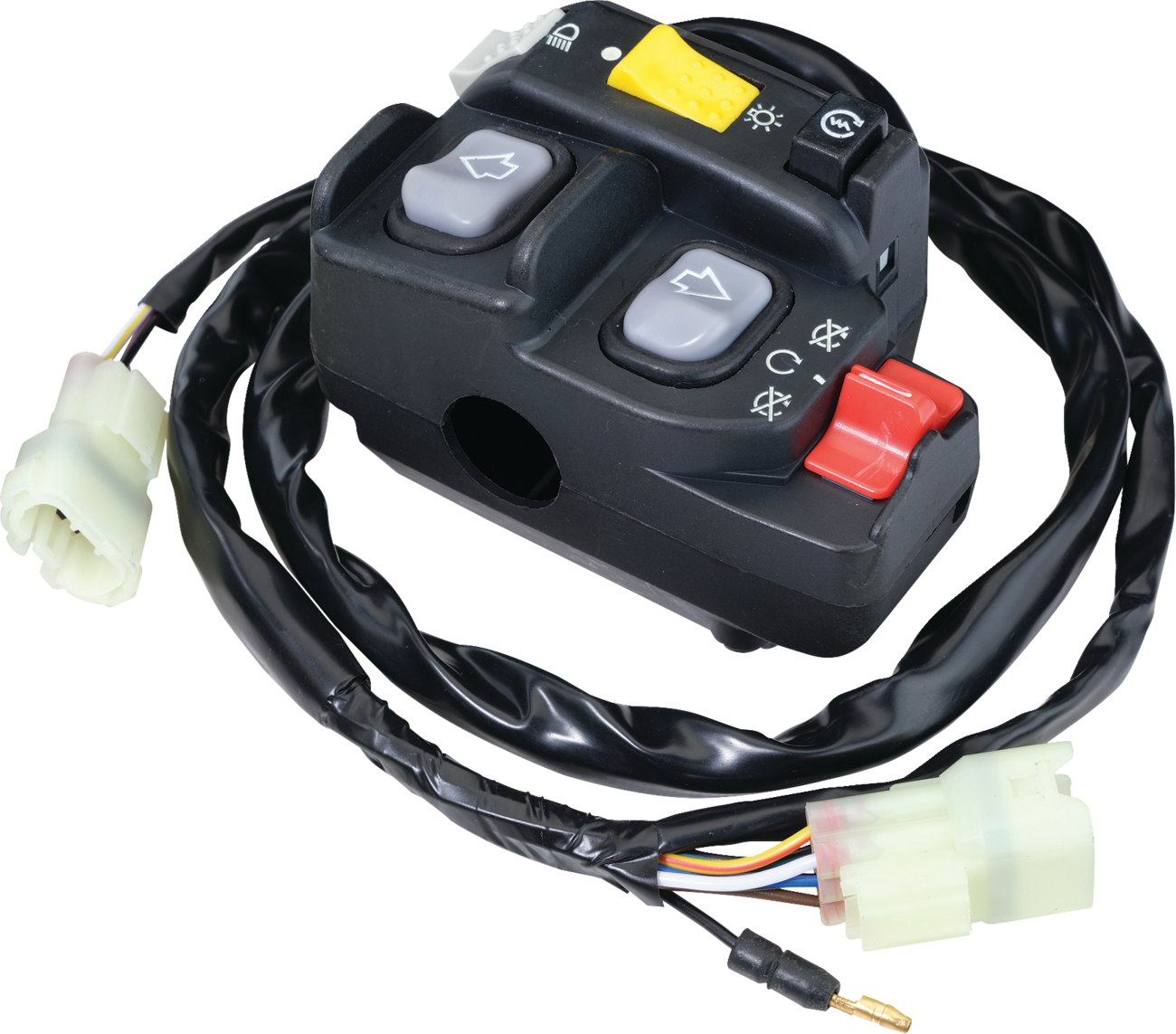 If one of your controls quits working, it is probably the internal switch on the handlebar blockThis complete block has all the same switches including hi/lo/off beam, off/run/off, and reverse overrideFix it with this cost-effective exact replacementSimple installationSpecs