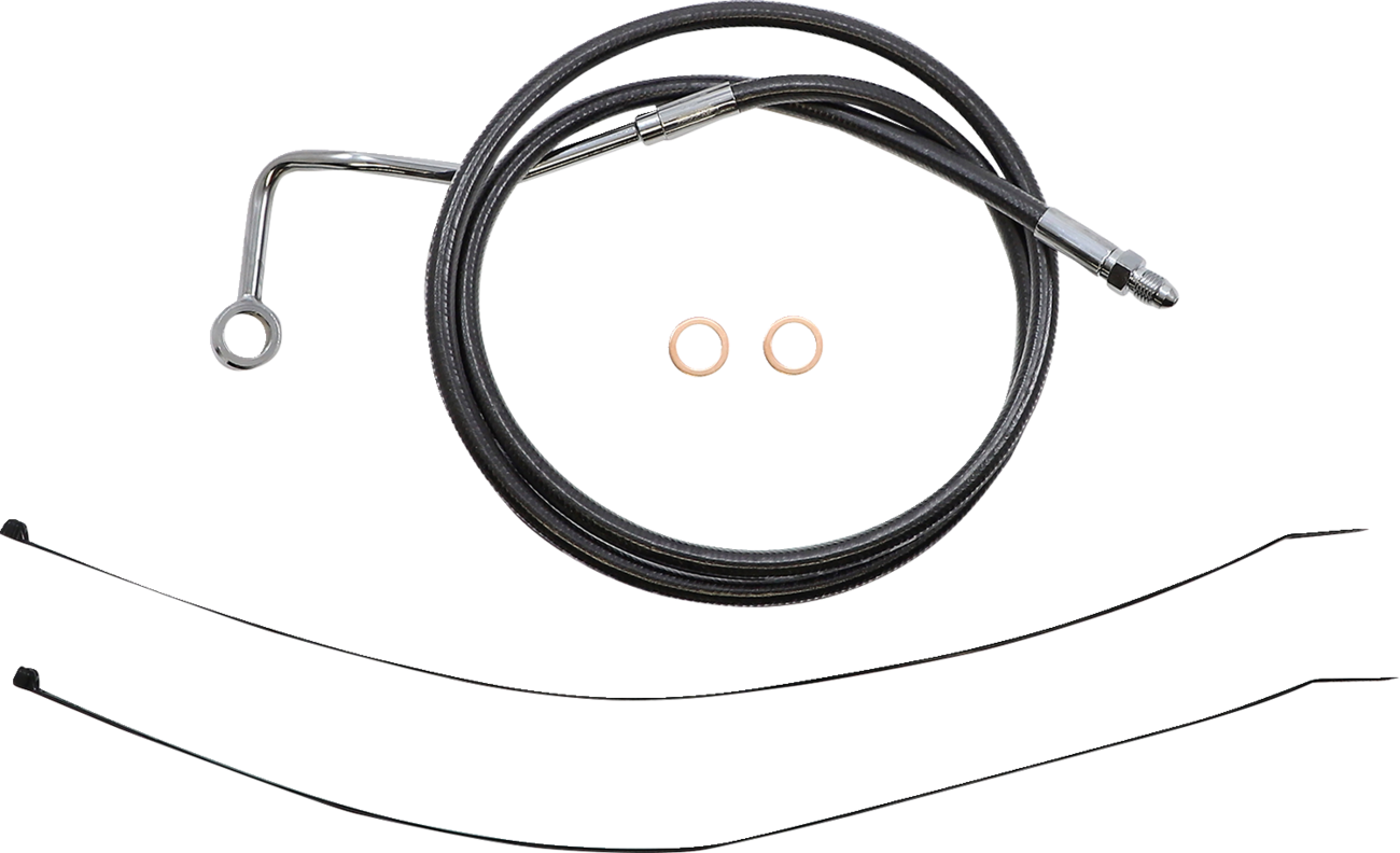 • Kit includes throttle and idle cables of throttle-by-wire extensions, clutch cable or hydraulic clutch line, brake lines, copper crush washers, hardware, and any necessary switch wiring of turn signal extension