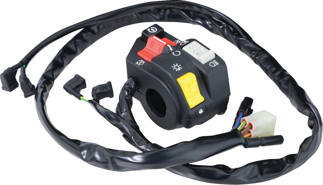 If one of your controls quits working, it is probably the internal switch on the handlebar blockThis complete block has all the same switches including hi/lo/off beam, off/run/off, and reverse overrideFix it with this cost-effective exact replacementSimple installationSpecs