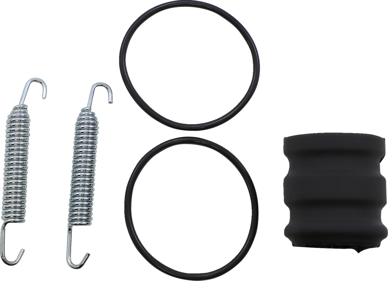 Hardware kits contain model-specific green Viton® rubber pipe O-rings, pipe-to-silencer coupler and springsSpecs