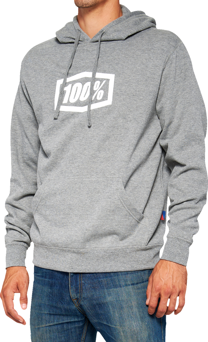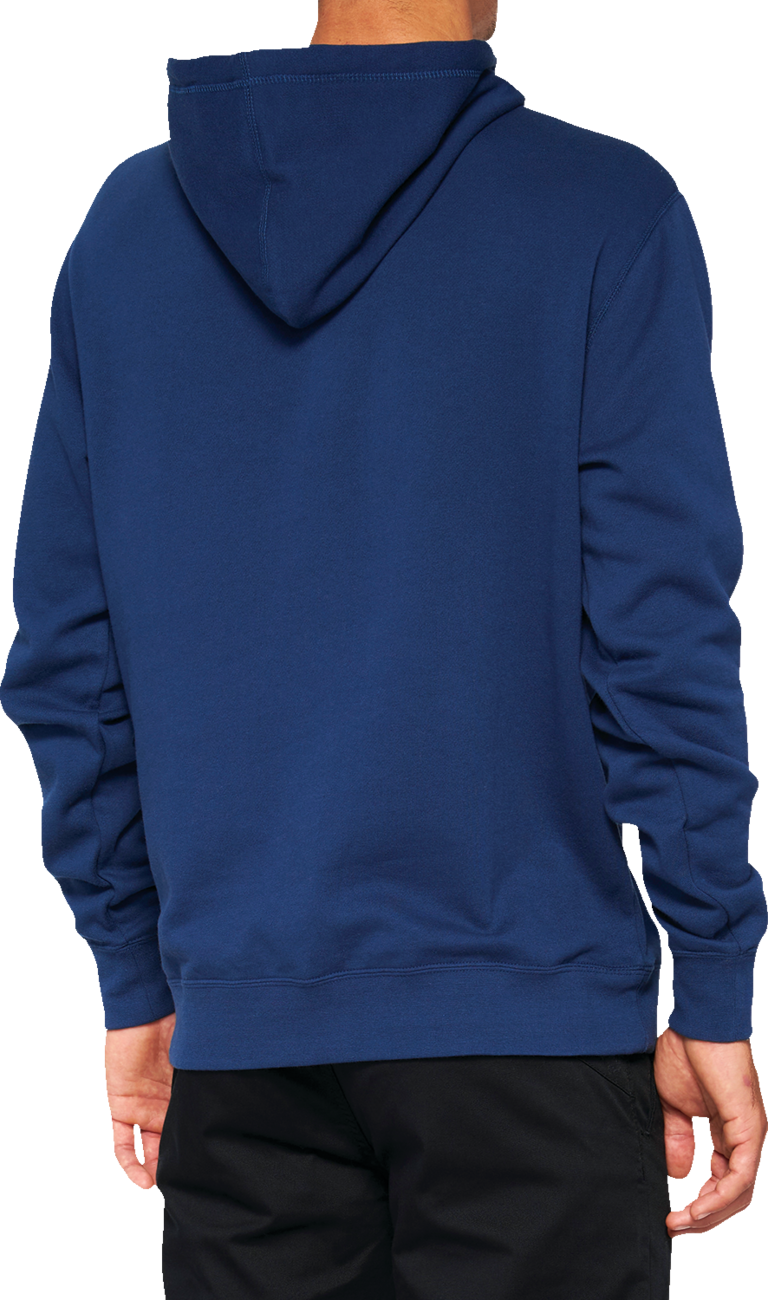 Pullover hoodie features a Cotton/Polyester blend brushed-back fleeceClassic kangaroo pouch pocketScreen-printed logo on frontLaser cut woven label detail at left side seamRib cuff and hem band finishHood draw cord closure