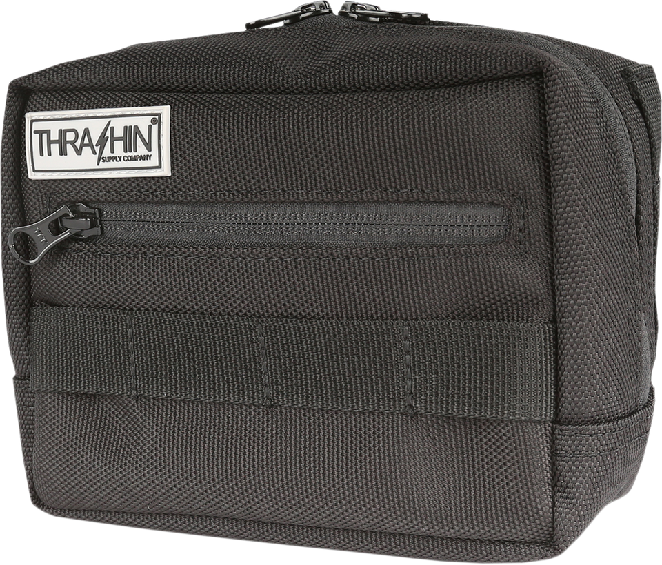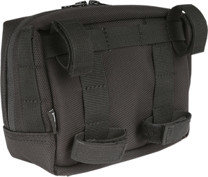 Can attach to handlebars with or without risers, as well as sissy barsFour quick-attach nylon straps for easy mountingConstructed from 1680D ballistic nylonMeasures 7” L x 31/2” W x 5” TFeatures YKK® zippersFour interior pockets