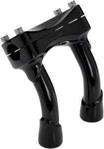 Investment-cast steel one-piece top clampTIG welded 0.120" wall 4130 chromoly steel uprights with 1/2"-13 threadsHandlebar clamp bolt patterns fit speedo/tach brackets on many stock model year HarleysFor 1" bars