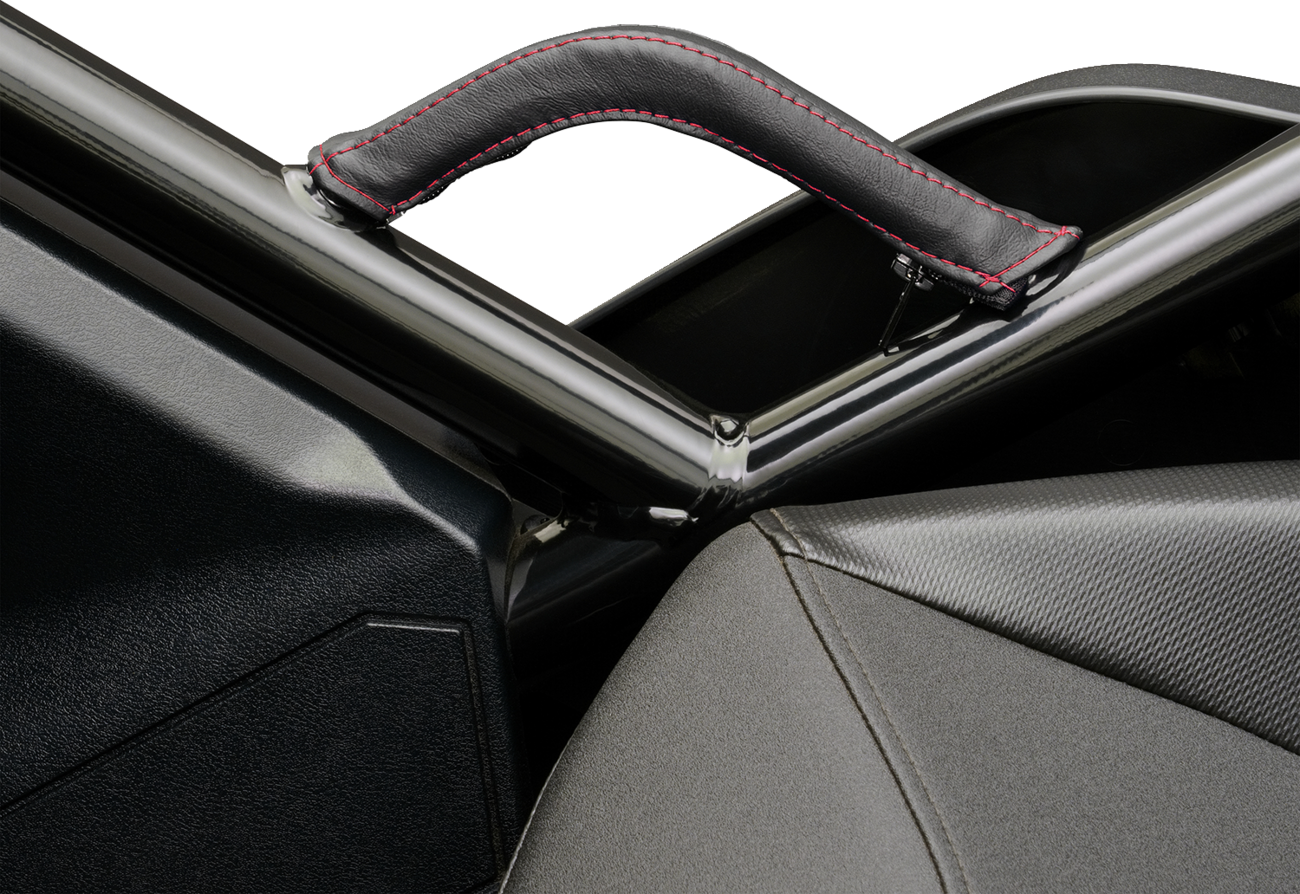 Hand Stitched, marine grade vinyl for durability, fade prevention, and cold weather crack protectionAvailable in black red & blue stitchingInstall in seconds with a zipper and holds snugly in placeRefined look and added comfort of the Kaliber Passenger Grab Handle CoverAll installation items includedMade in the U.S.A.Specs