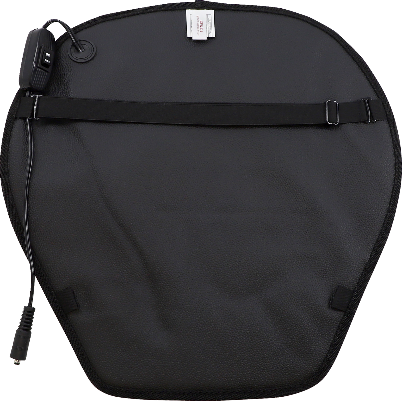 Ergonomically designed to give a snug fit over most seat shapes and sizes and can be used on motorcycles (sportbike or big cruiser/touring seats), snowmobiles and ATVsDrymax® outer seat shell allows fabric to breathe and helps air flow through seat; waterproof inner lining protects heat metal fibers from getting wetAnti-skid bottom keeps seat in place once snapped on with adjustable webbing system; includes extra-long webbing for bigger seatsProvides full heat coverage and chill-free riding comfort; raises rider to a minimal heightConstructed using light and flexible Zepto heat metal fiber technologyProduces 17.4 watts of heat and draws 1.3 Amps of currentComes with a 20" battery cord and built-in ON/OFF switch