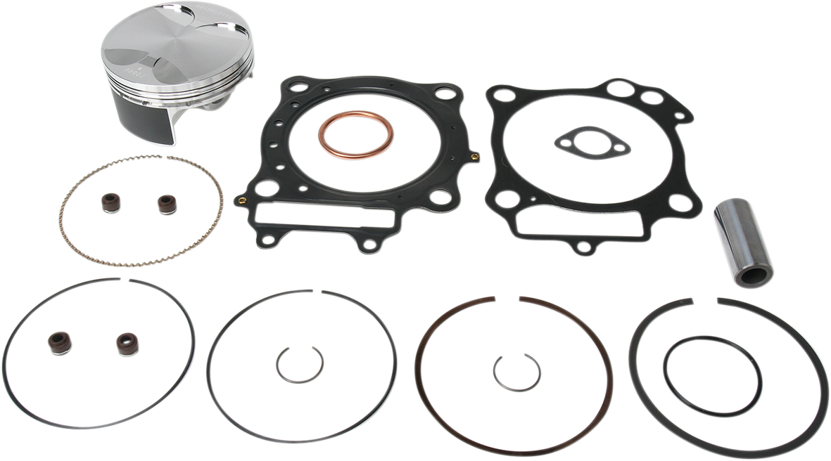 Complete piston kit includes pistons, rings, wrist pins, circlips and top-end gasket kit for one complete engineWiseco ring types are not interchangeable (i.e., CD is not interchangeable with LC)Wiseco pistons can be fitted only with Wiseco ringsSpecs