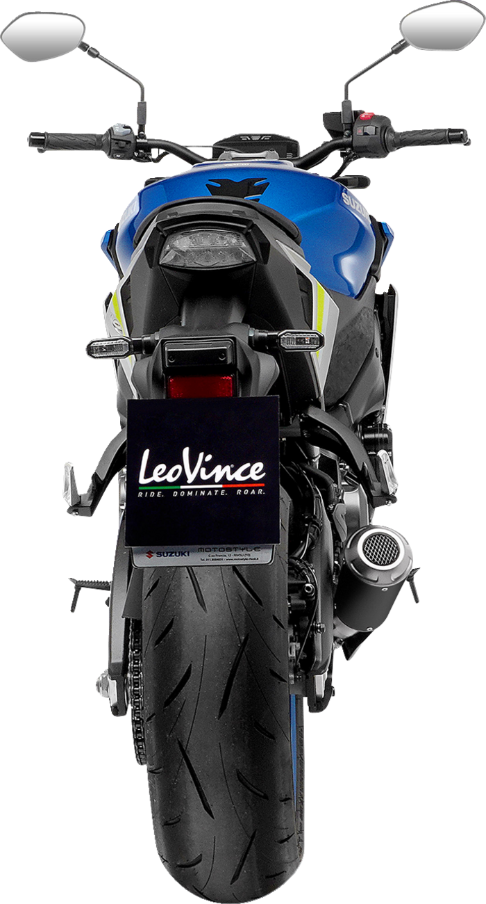 Weight: 2.65 lb (-2.65 lb vs the OEM)AISI 304 stainless steelShot blasted end capRear stainless steel meshMetallic ceramic-based black paint with a matte finishingLaser etched LeoVince logoRacing "LV" sticker resistant to high temperature included in the packagingLaser cut bracketCarbon fiber heat shield included in the packageSpecs
