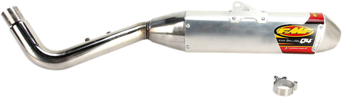 The Q4 employs intricate chambers, baffles and proprietary multistage packing materialWith the Q4 you don’t need to hear the power, just feel the power!Less sound equals more groundPower gains throughout the entire rpm rangeSpark arrestor includedPounds lighter than stockRugged design for off-road enduranceMade in the U.S.A.Specs
