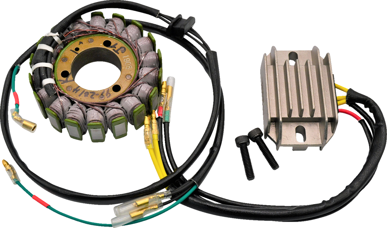 Converts the system from a single phase permanent magnet to a 3 phase permanent magnet systemOutput power is increased by 50%The kit comes with both a new stator and rectifier-regulator and will reuse the OE flywheelSpecs