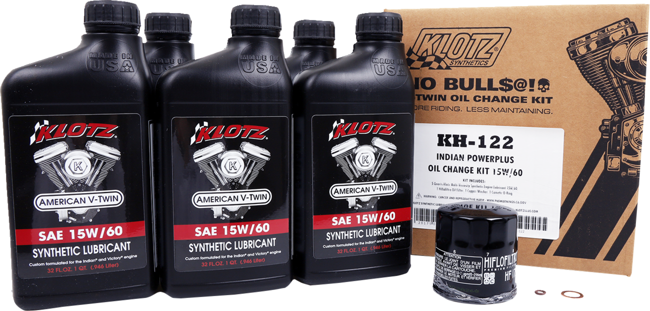 • Klotz® V-Twin Oil Change Kit comes with just the right amount of lubricant, no more no less