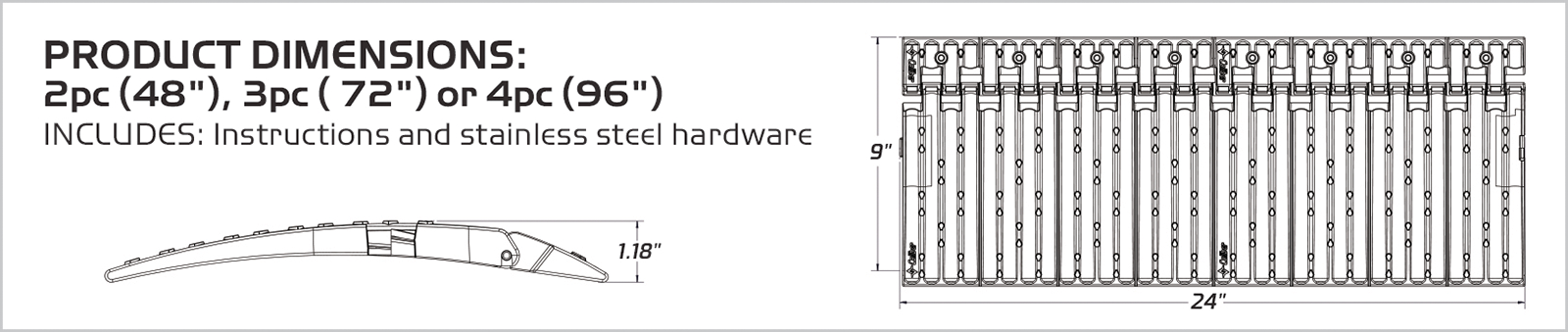 Innovative design provides smooth edge transition from the ground to your trailer or rampIncorporate Caliber's proven friction-reducing glide technologyMultiple fastening points for strong mounting; integrated edge for easy location fasteningGreat for transition from door to deckGreat for eliminating snow trap between door and deckSets for enclosed trailers feature heavy-duty easy-flip hingesWidth accommodates all skis, ski stances and ATV/UTV tires10-piece set can be fastened in a fixed position for tilt trailersHigh-impact plastic (HDPE) construction won't crack, chip, break or warp outStainless steel Torx T-20 screws install with ease (driver included)Dimensions: 8-3/4" x 5-7/8" x 1/2"Made in the U.S.A.
