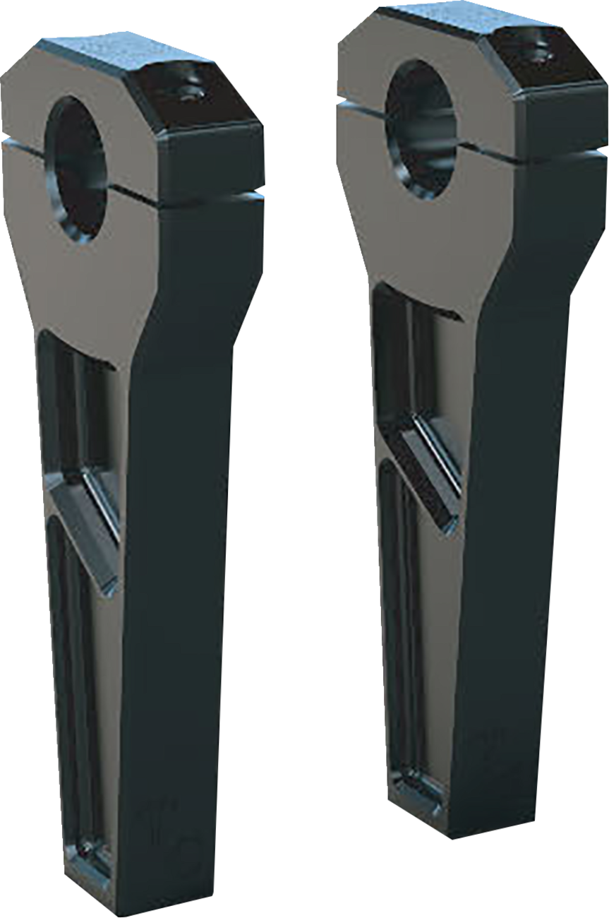 Improves look and feel of riding positionFits any Harley-Davidson with 3.5 on center risersExtremely strong! Rider will not experience any flex from the risersManufactured from billet aluminum in the U.S.A.Todds Cycle logo engraved into top clamps and lower risers