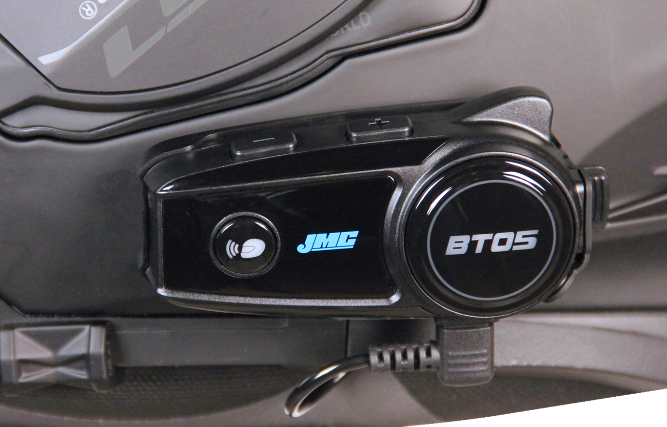 Includes JM Corporation’s propriety Bluetooth 5.0 software package with improved on-highway volume levels and smoother operation with the latest versions of the iPhone and Android operating systemsDesigned for installation into most flip-up modular, full-face or open-face style helmetsThis helmet headset kit includes BT05 control head, USB charger/adapter cable, both boom & chin-bar style microphones, two slim-line high-output mount in helmet speakers, mounting clip, control head base, mounting hardware, Velcro/adhesive pads and complete installation/operation instructionsFull function operating time: 8 hoursIntercom mode: helmet to helmetIntercom mode talk distance: 600 mTime to full charge: 3 hoursFull charge standby: 20 daysLithium-Ion battery capacity: 800 mAhVoice command dial :One-touch voice-command from cell phone contactsHelmet speakers: Stereo slim-line high-outputBoom/chin-bar microphones: Noise cancellingCharge port connector type: USB Type-CMounting features :Clip-on or adhesive backed mounting plate