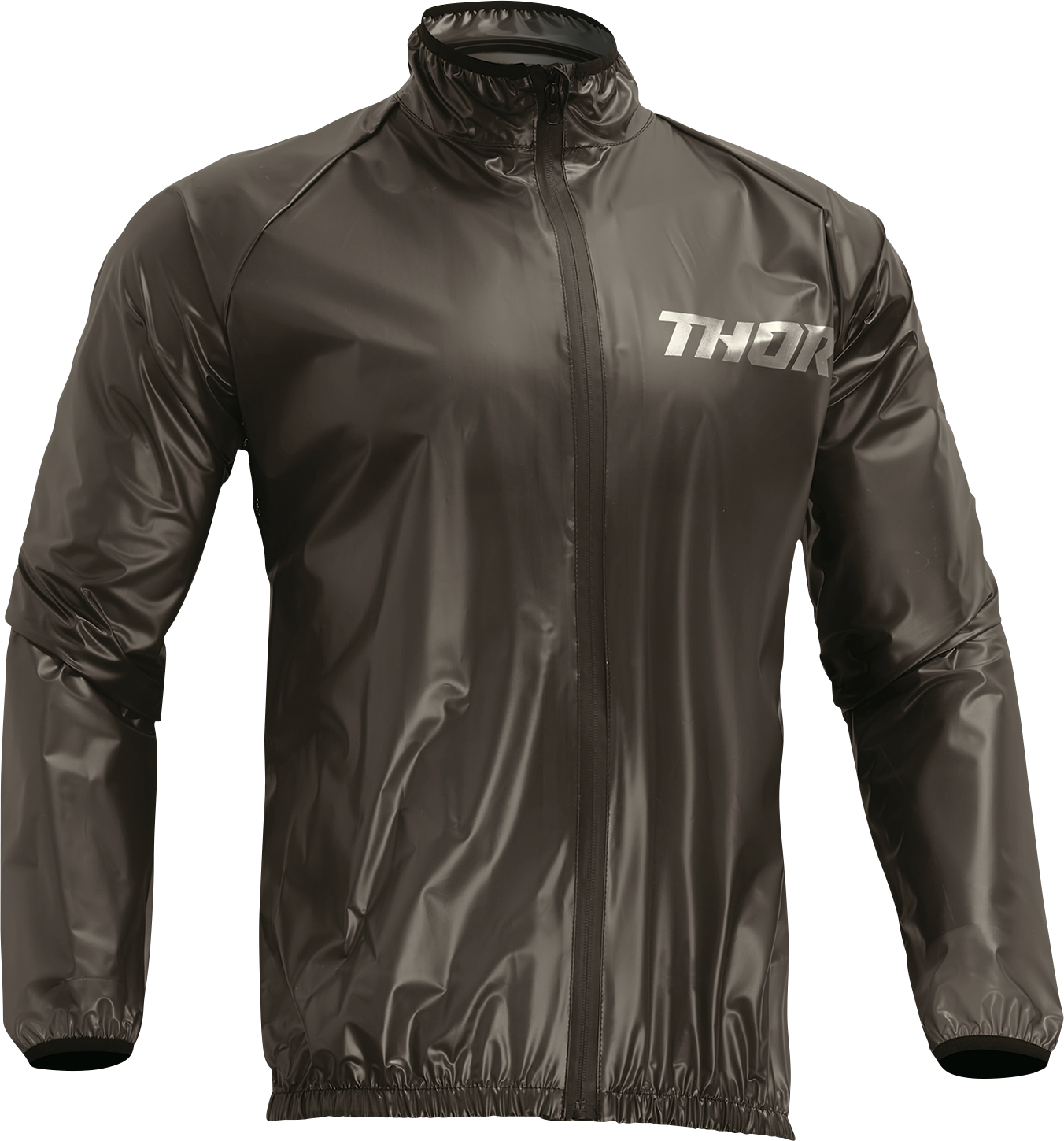 Rear exhaust vents allow hot air to escapeElastic binding at collar, cuffs and waistRaglan sleeves with underarm mesh panels for ventilationWaterproof zipper