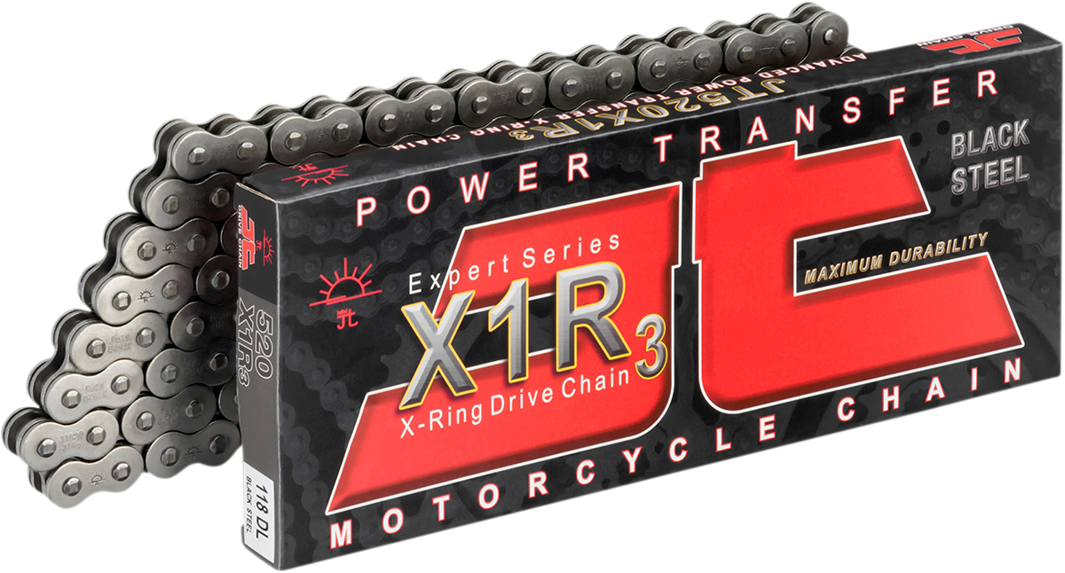 JT Chains produce a full range of superior quality motorcycle chains using leading-edge technology and only the highest grade of special steel alloysSpecifications of the JT advanced power transfer chains meet or exceed the requirements of all modern motorcycles, street, MX, enduro, offroad and ATVLeading edge technology in materials and production ensures top class performance, strength and durabilityMinimum weight at maximum strength